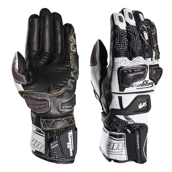 Furygan Styg20 Kevlar Motorradhandschuhe aus Leder, sportlich mit Handflächenschleifer, schwarz-weiß