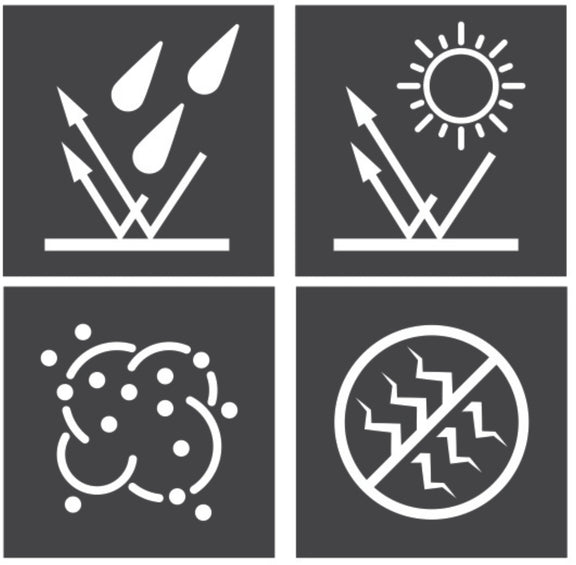- Beschermt tegen regen, vuil en UV-straling